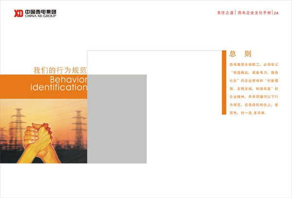 西電集團全體職工,必須牢記“制造精品,裝備電力,服務社會”的企業使命和“創新圖強,至精至誠,和諧共贏”的企業精神,并共同遵守以下行為規范,在各自的崗位上,愛西電,創一流,多貢獻。
