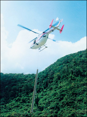用直升飛機(jī)運送塔料,以保證工程進(jìn)度