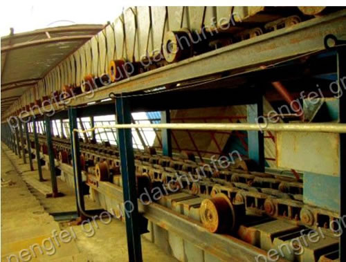SDB鏈斗式輸送機(jī)適用于輸送尖銳的、磨蝕性強(qiáng)的或者高溫(≤250℃)的塊粒狀物料。水泥生產(chǎn)過程中,回轉(zhuǎn)窯熟料經(jīng)冷卻后一般送入熟料庫(kù)儲(chǔ)存,以消除生產(chǎn)的不均衡性及熟料溫度、組分、變化的影響。水泥熟料具有較強(qiáng)的磨蝕性,熟料溫度雖經(jīng)冷卻仍有可能較高,為此熟料入庫(kù)(包括多個(gè)熟料庫(kù)庫(kù)頂之間的布料)均采用鏈斗式輸送機(jī)。鏈斗輸送機(jī)的輸送傾角一般≤60°,較經(jīng)濟(jì)的傾角是45°。