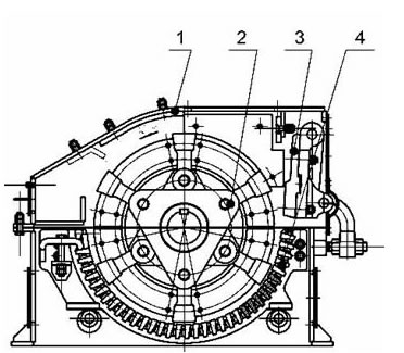1.機(jī)架部件 2.轉(zhuǎn)子部件 3.破碎板 4.篩子部件